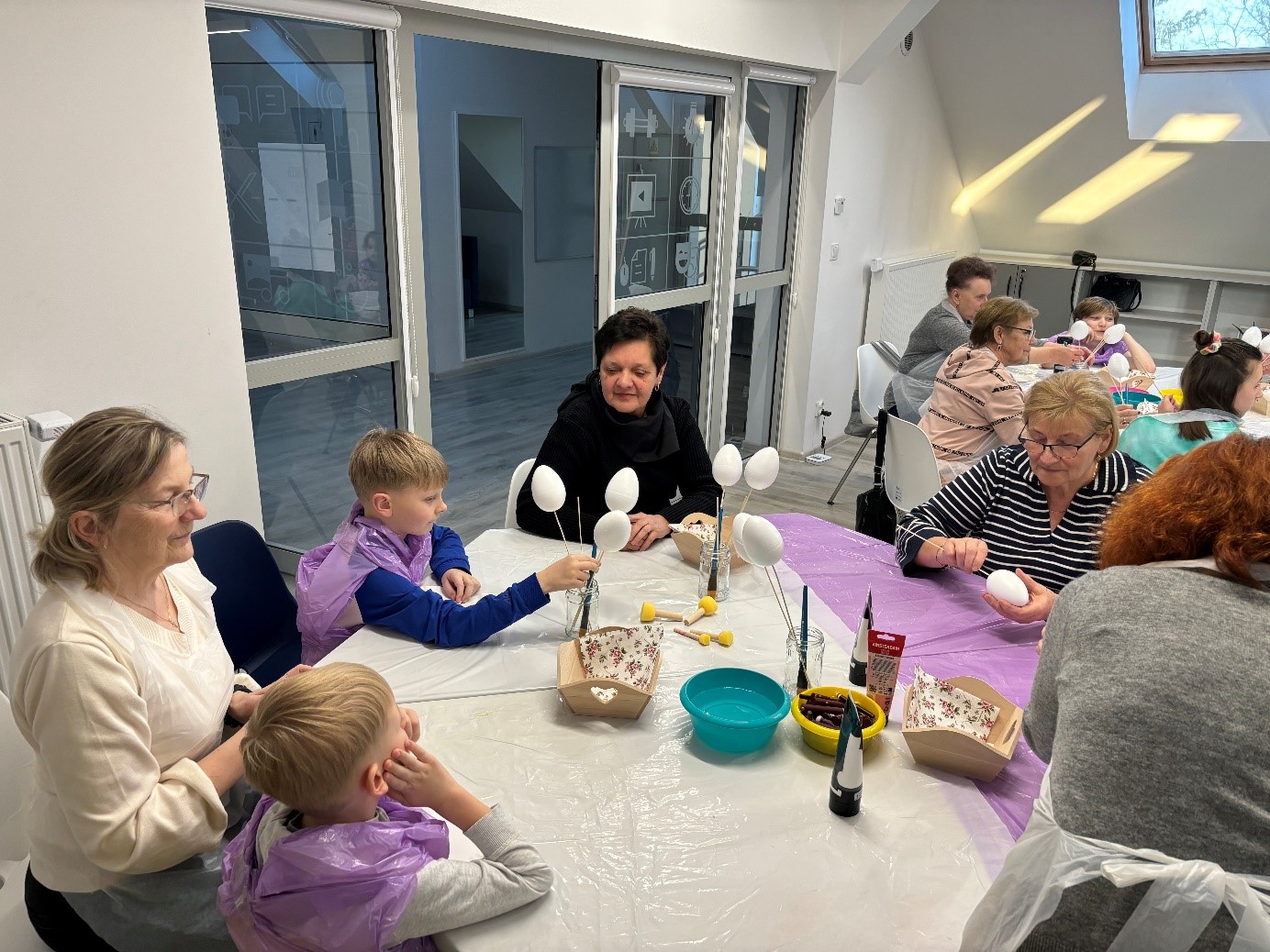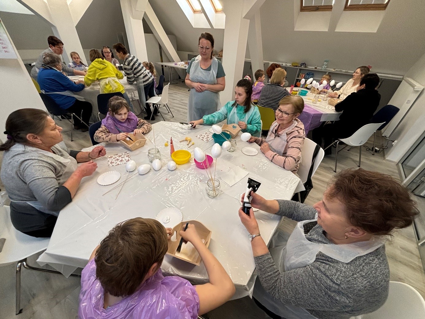 W dniu 19 marca pracownicy Centrum Usług Społecznych w Skawinie mieli przyjemność zorganizować niezwykłe warsztaty międzypokoleniowe dla członków Stowarzyszenia “Wolanie 60+” w Woli Radziszowskiej. Podczas tego inspirującego spotkania uczestnicy Stowarzyszenia, włącznie z ich wnukami, mieli okazję eksperymentować z techniką decoupage, tworząc urocze ozdoby wielkanocne.