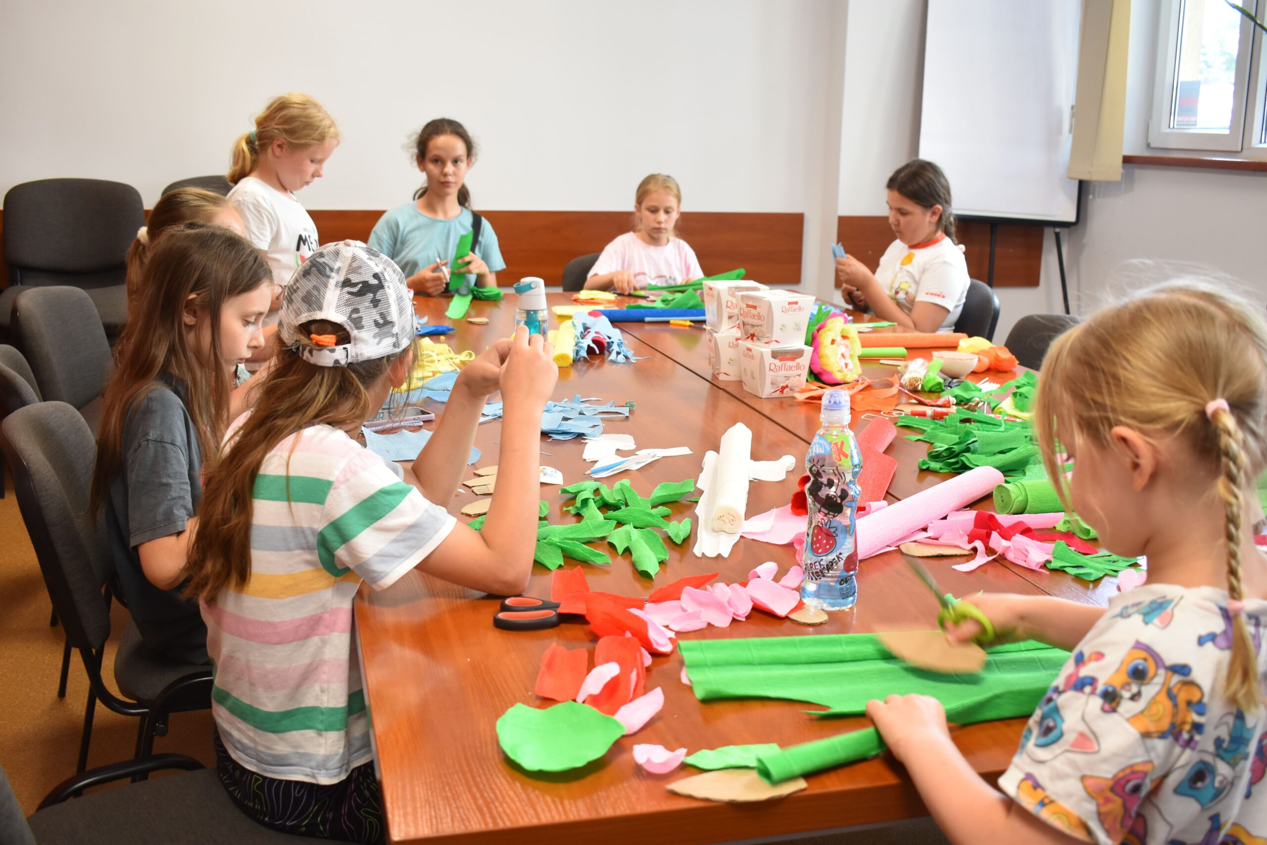 Starsze dzieci, powyżej 10 roku życia, mogły wziąć udział w warsztatach artystyczno-plastycznych, które również trwały od 16:00 do 18:00. Pod okiem instruktorów dzieci tworzyły piękne prace plastyczne, wykorzystując różnorodne techniki i materiały. Efektem ich pracy były kolorowe bukiety kwiatów, które mogły zabrać ze sobą do domu jako pamiątkę.