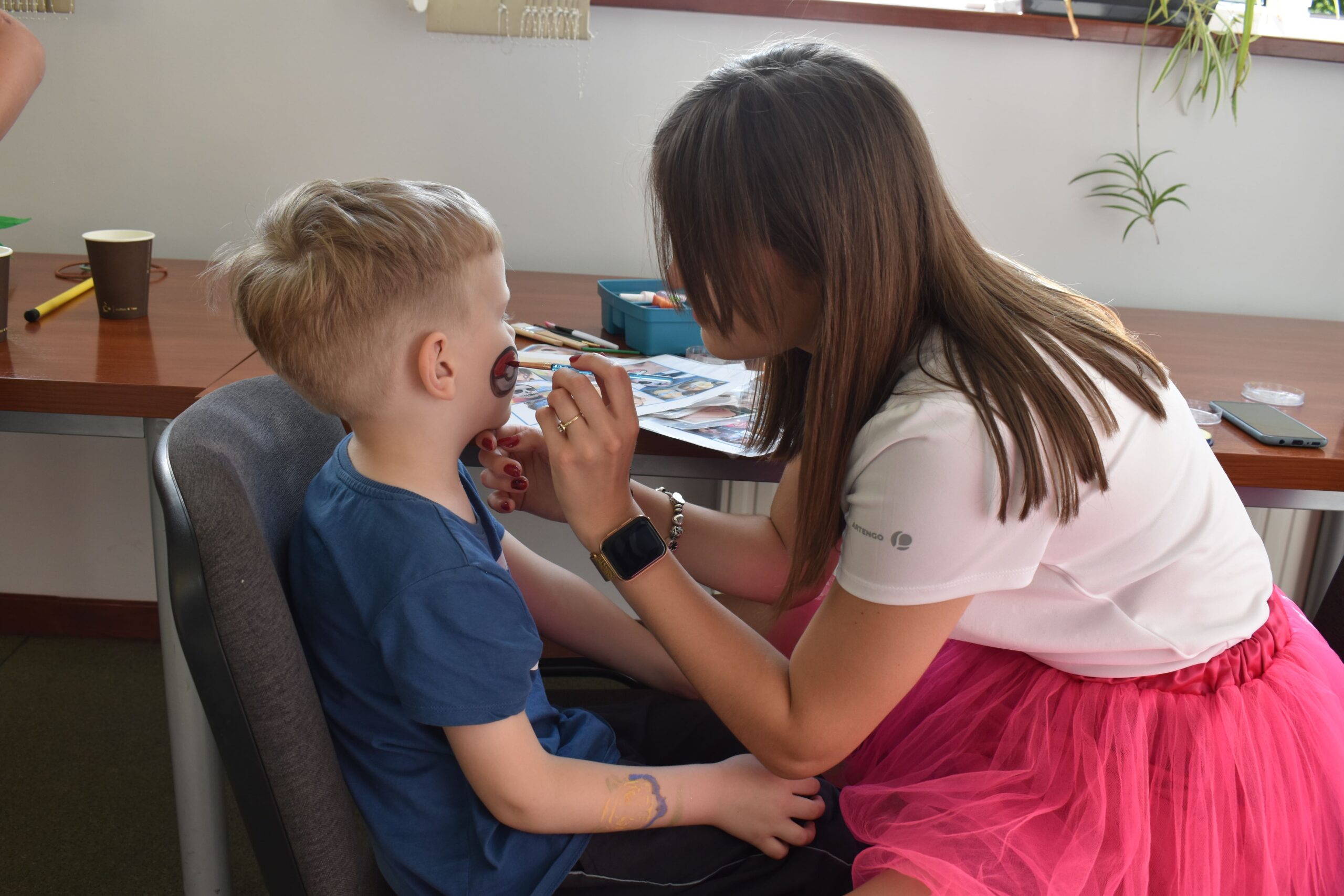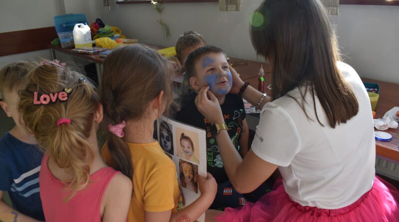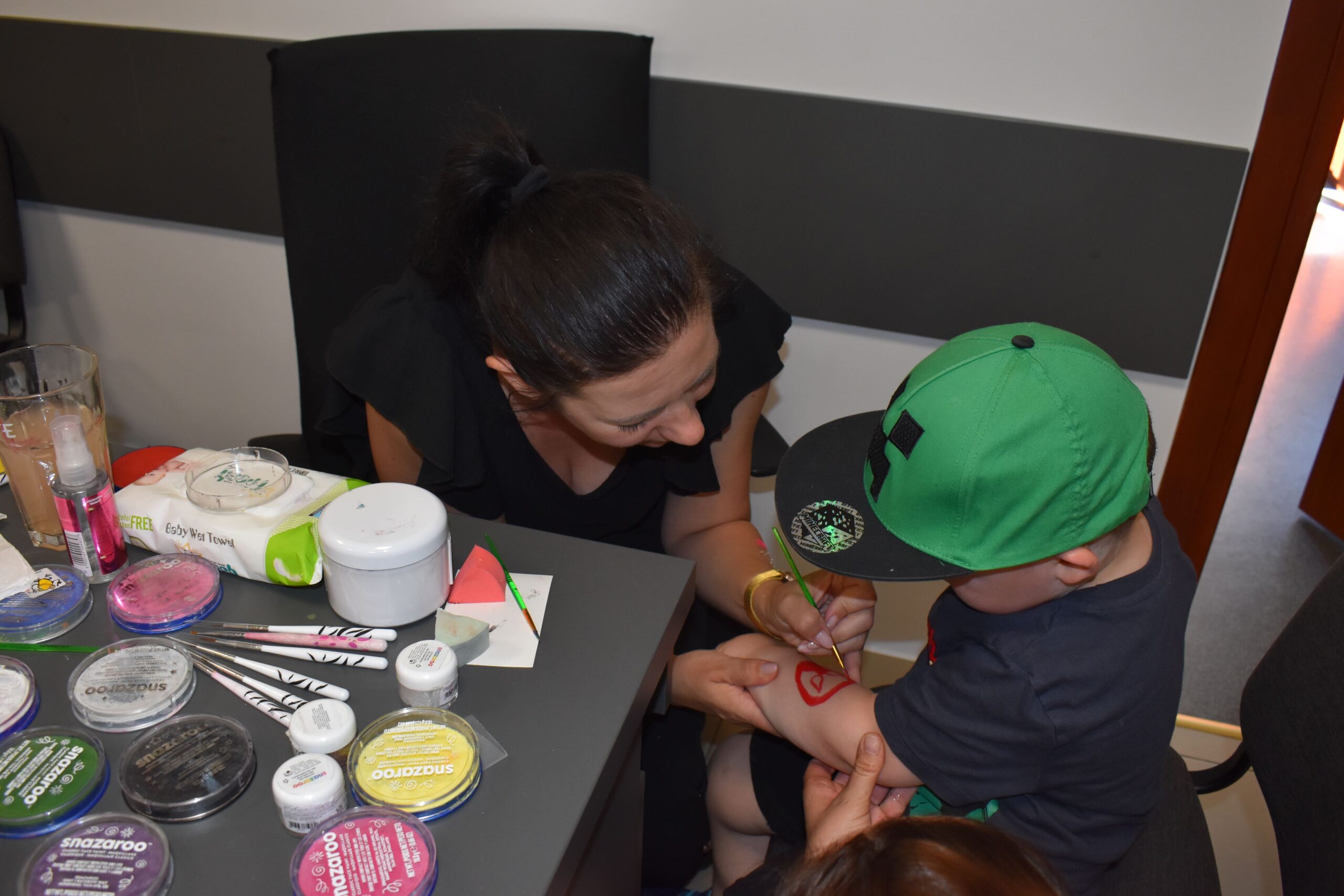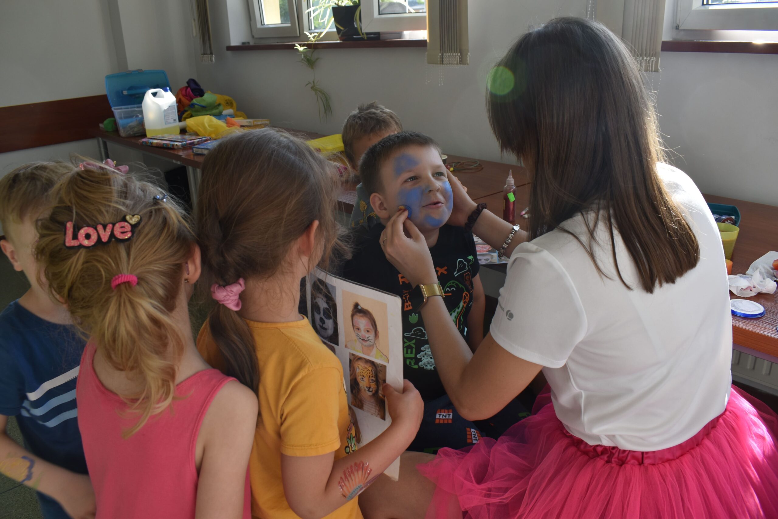 Na terenie Centrum dostępne były również stoiska, gdzie dzieci mogły zrobić sobie kolorowe warkoczyki oraz pomalować twarze w fantazyjne wzory. Te dodatkowe atrakcje cieszyły się niezmiennie dużą popularnością wśród uczestników.