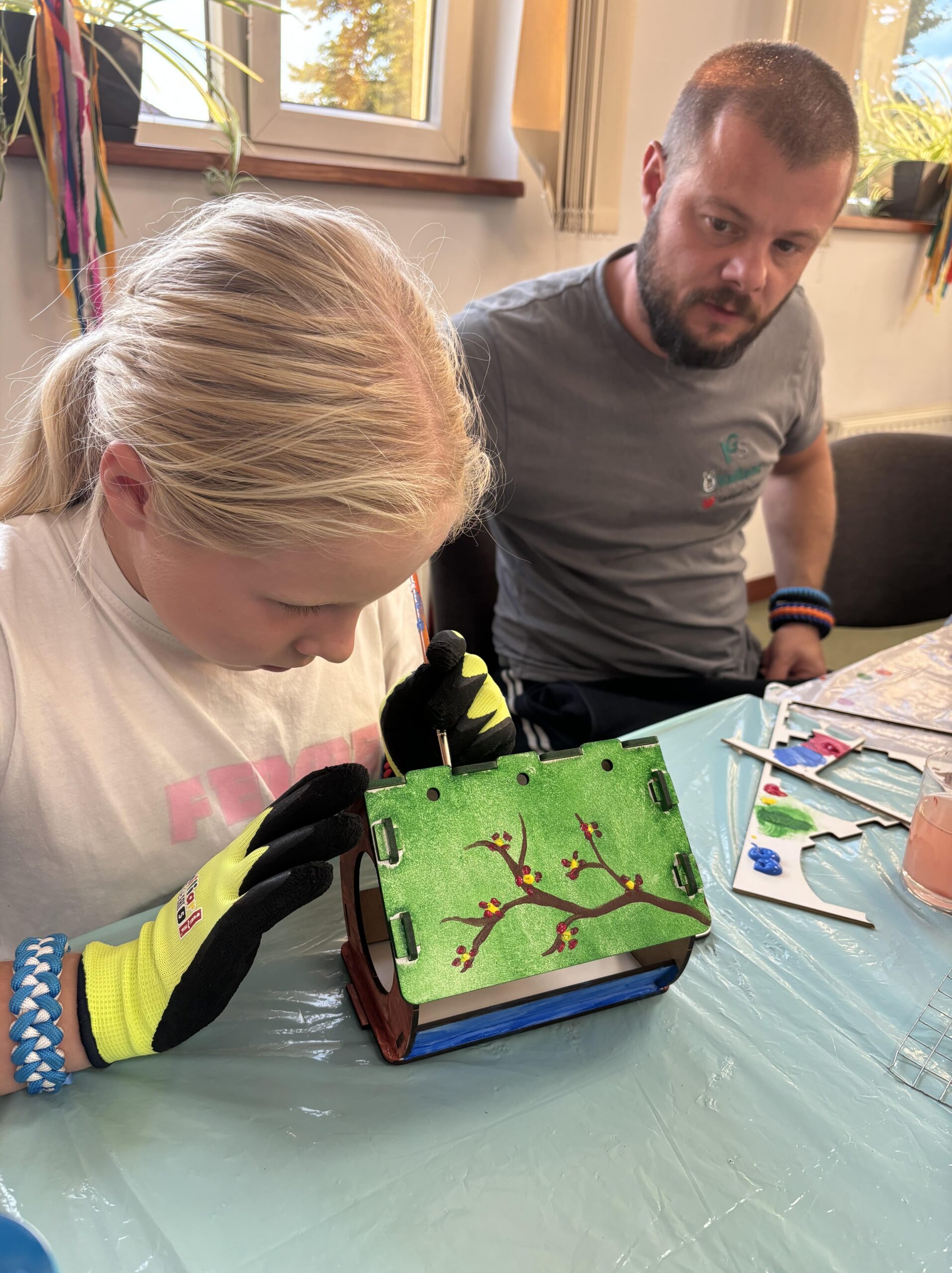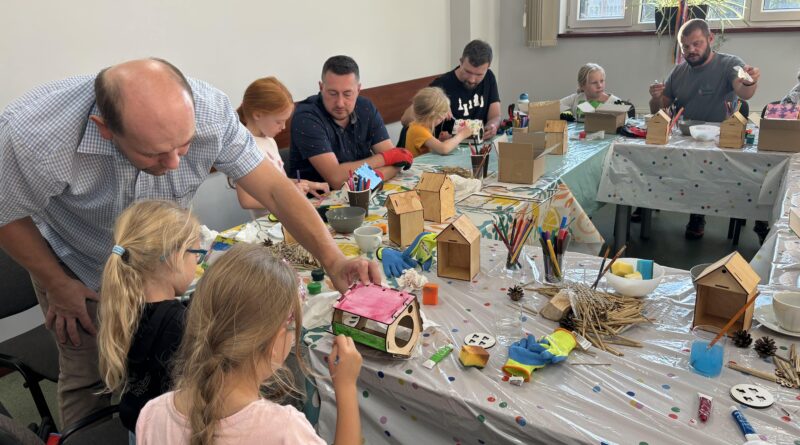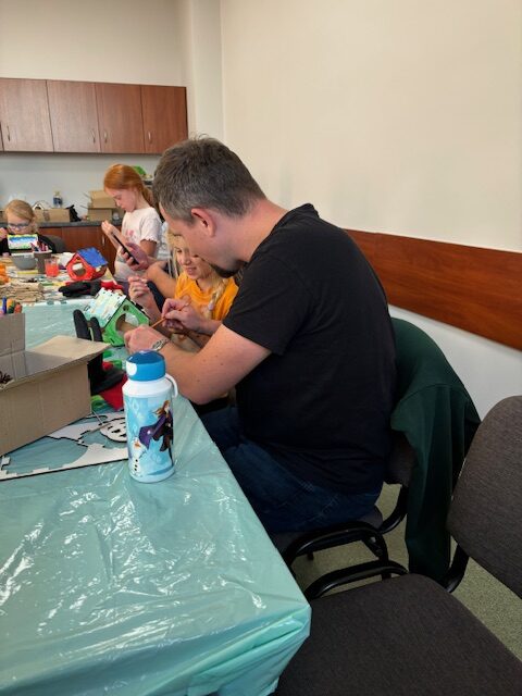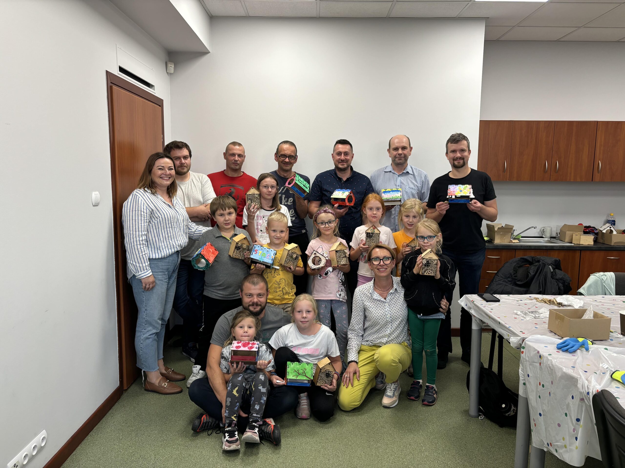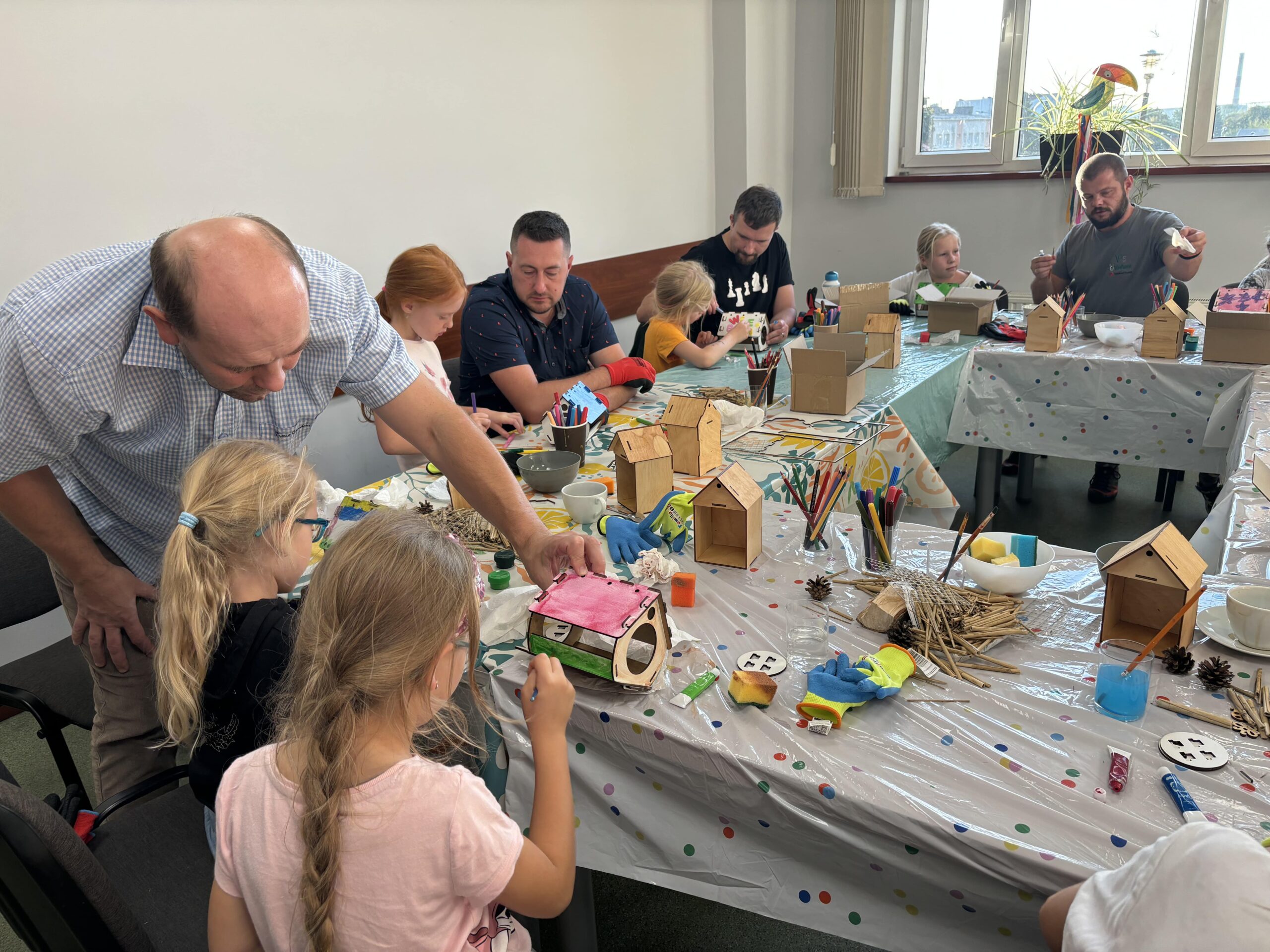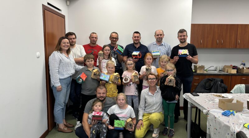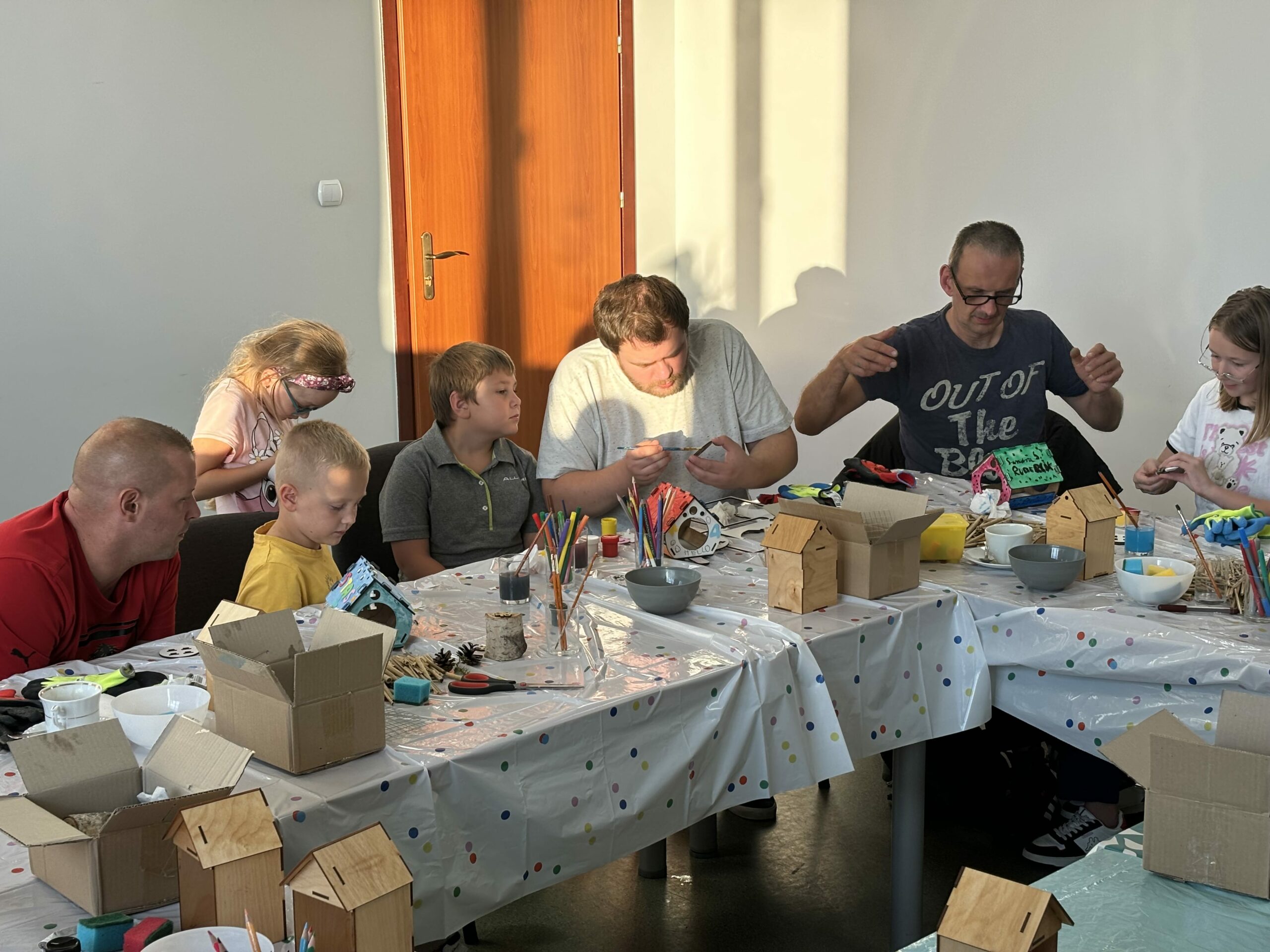 W poniedziałek 23 września w Centrum Usług Społecznych odbyły się wyjątkowe warsztaty DIY dla ojców i dzieci, zorganizowane w ramach akcji „Wrzesień miesiącem mężczyzn”. W trakcie wydarzenia dzieci wspólnie z tatami własnoręcznie złożyły modele karmników, które następnie pięknie pomalowali. Dodatkowo uczestnicy wykonali hotele dla owadów z gotowych zestawów, co było wspaniałą okazją do nauki i twórczej zabawy.