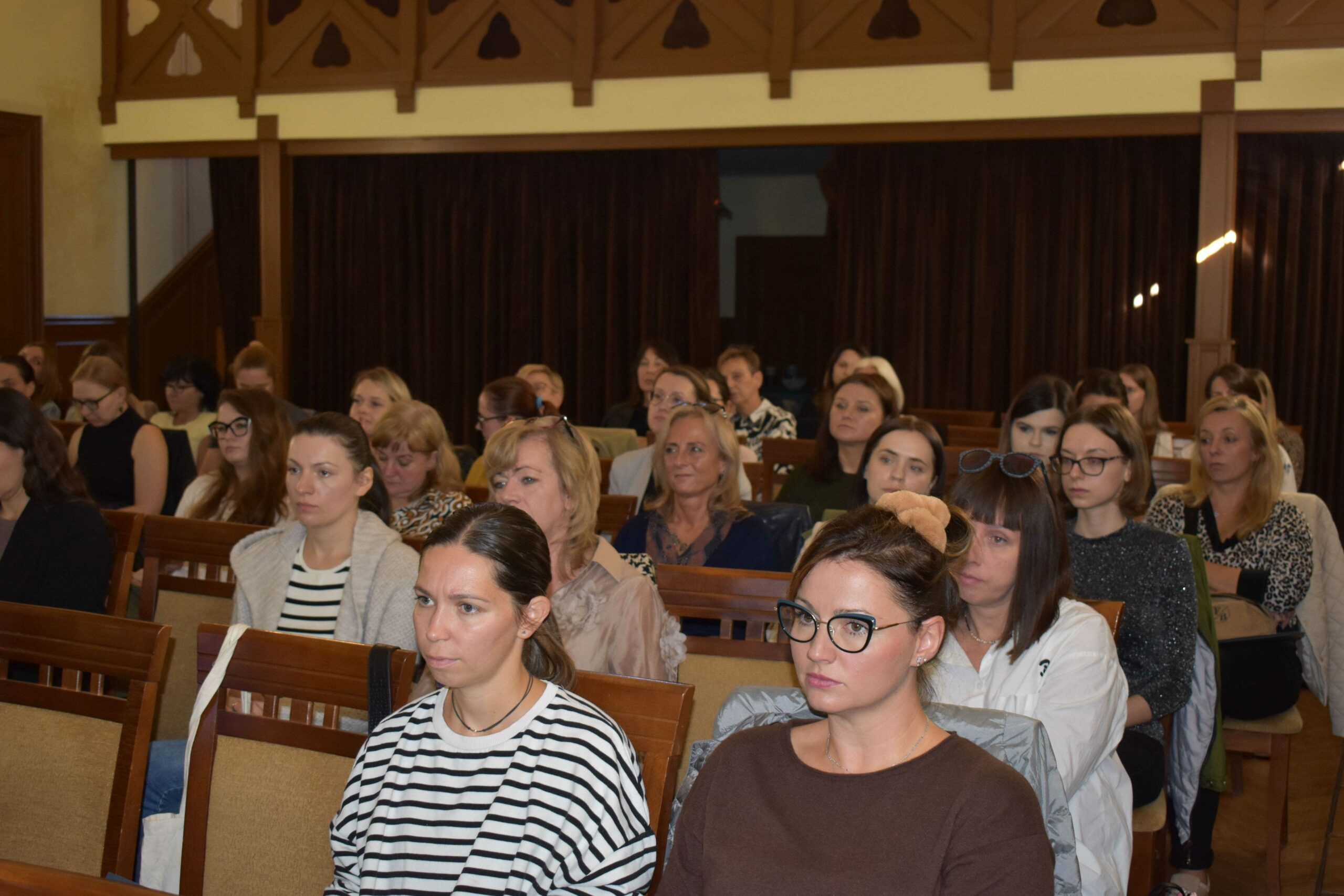 „Przyczyny, sposoby diagnozowania i formy pomocy dziecku z zespołem FAS” – poprowadziły ją Małgorzata Czerniawska, psycholog i Zastępca Dyrektora ds. Specjalistycznej Poradni Psychologiczno-Pedagogicznej w Skawinie, oraz Katarzyna Guguła, psycholog kliniczny. Prelegentki szczegółowo omówiły mechanizmy powstawania FAS, metody diagnozy oraz dostępne formy wsparcia dla dzieci z tym zaburzeniem. Wskazały także na istotną rolę współpracy między placówkami edukacyjnymi a rodzicami.