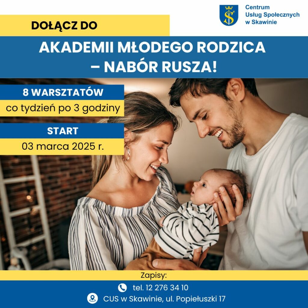 Centrum Usług Społecznych w Skawinie zaprasza przyszłych oraz świeżo upieczonych rodziców do udziału w bezpłatnej Akademii Młodego Rodzica – cyklu warsztatów, które pomogą lepiej przygotować się do nowej roli i wesprą w świadomym rodzicielstwie.