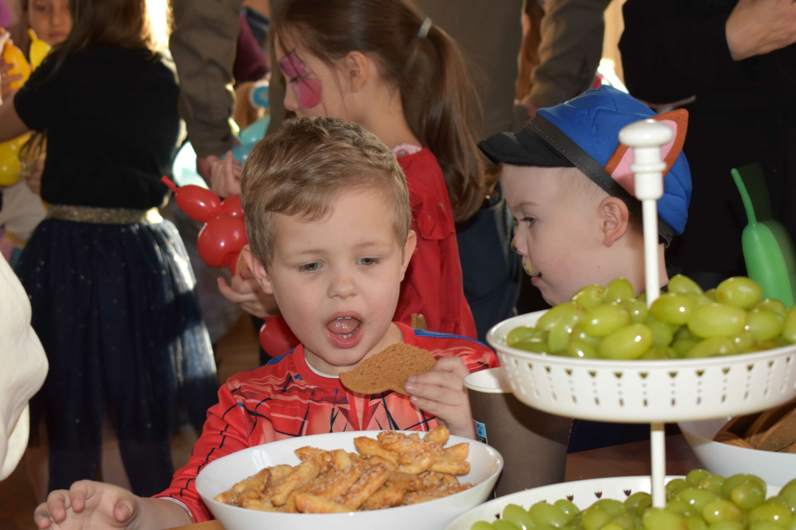 Podczas balu na najmłodszych czekały liczne atrakcje. Były animacje, malowanie twarzy, balony w różnych kształtach oraz kącik malarski, w którym dzieci mogły tworzyć swoje małe dzieła sztuki. Ogromnym zainteresowaniem cieszyła się również fotobudka, w której uczestnicy mogli wykonać pamiątkowe zdjęcia. Nie zabrakło także zdrowego poczęstunku, który idealnie wpisał się w tematykę wydarzenia.