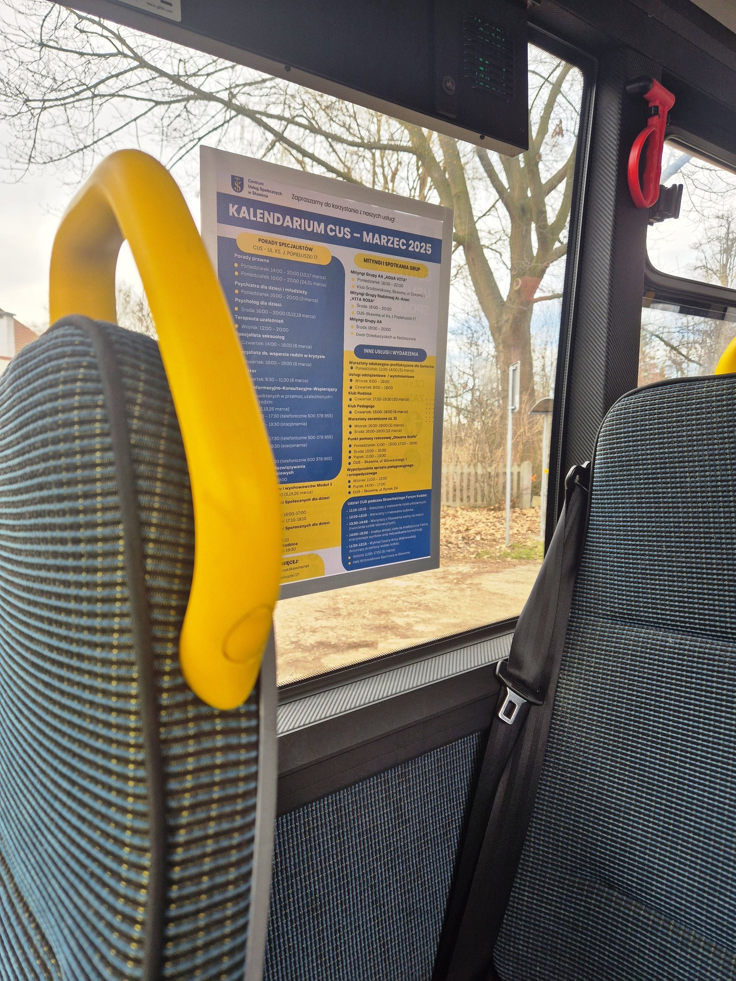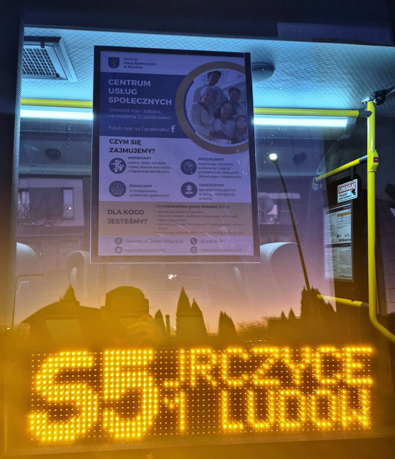 Z radością informujemy, że od lutego plakaty Centrum Usług Społecznych w Skawinie zamieszczane są także w busach Skawińskiej Komunikacji Gminnej (S1, S2, S3, S4, S5), które obsługują trasy na terenie gminy Skawina. Dzięki współpracy z Gminą Skawina, możemy dotrzeć z informacjami o naszych usługach społecznych do szerszego grona odbiorców.