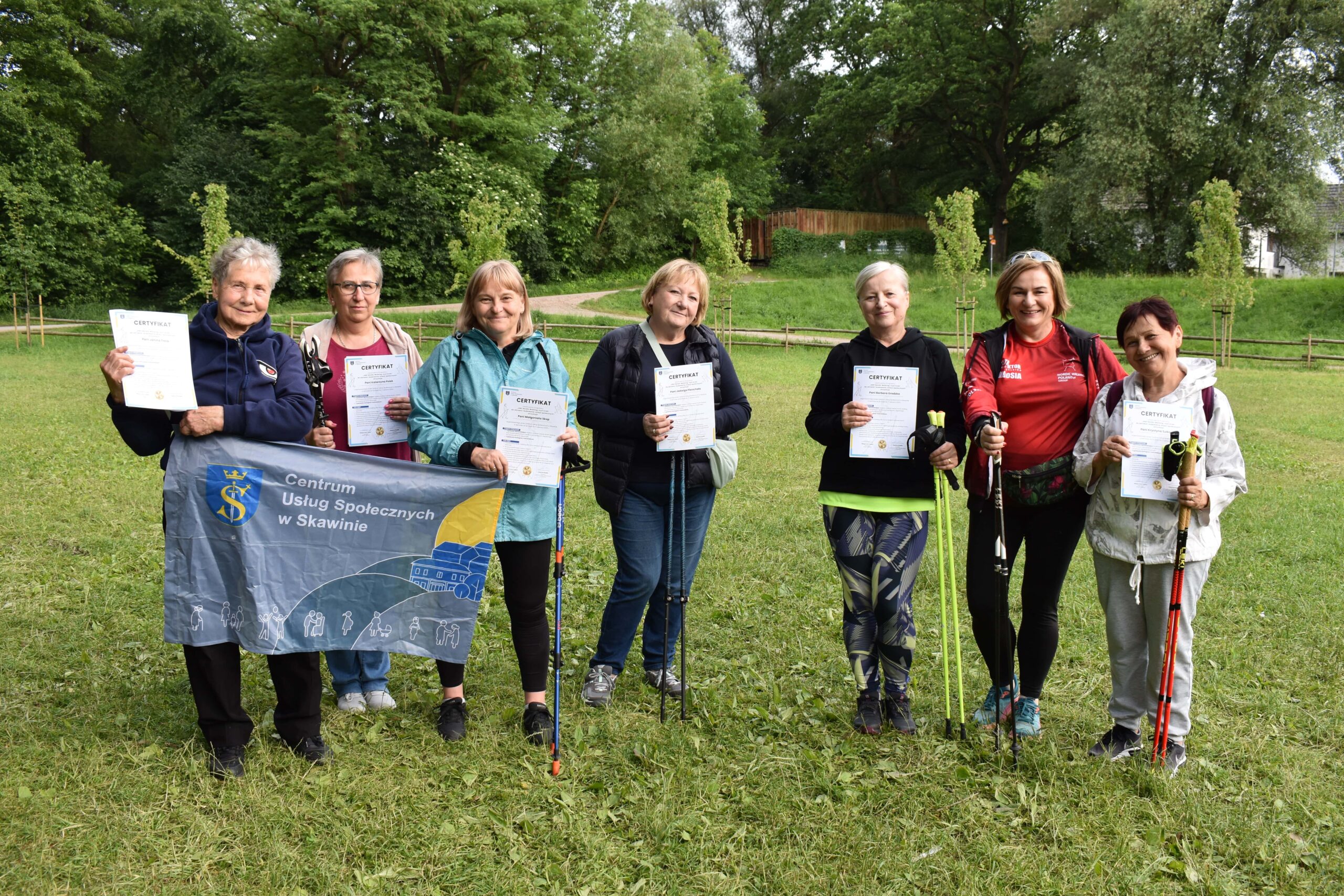 Dziękujemy wszystkim uczestnikom za udział w projekcie, wytrwałości w rozwijaniu nowo zdobytych umiejętności, aby Nordic Walking stał się stałym elementem ich codzienności. Niech wspólne spacery przynoszą Im radość, zdrowie i inspirują do dalszej aktywności. Życzymy także, aby ich nowo powstała grupa stała się przestrzenią dla przyjaźni i wsparcia – miejscem, które dodaje energii i buduje poczucie wspólnoty.
