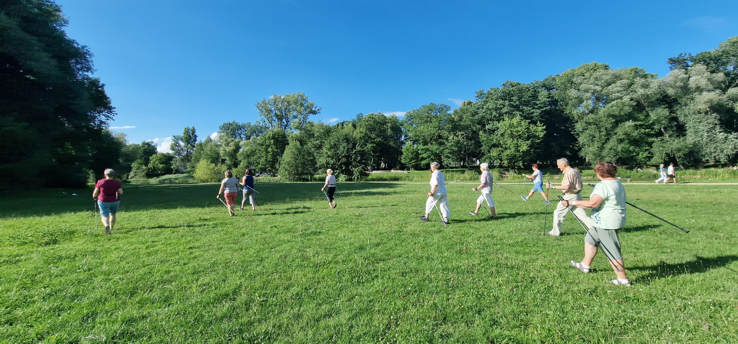 Było to dodatkowe spotkanie dla osób, które nie mogły uczestniczyć w ostatnim treningu w ramach III edycji Programu „ABC NORDIC WALKING – kroki do zdrowia i budowania relacji społecznych”. Nie ma to jak świętować i maszerować jednocześnie!
