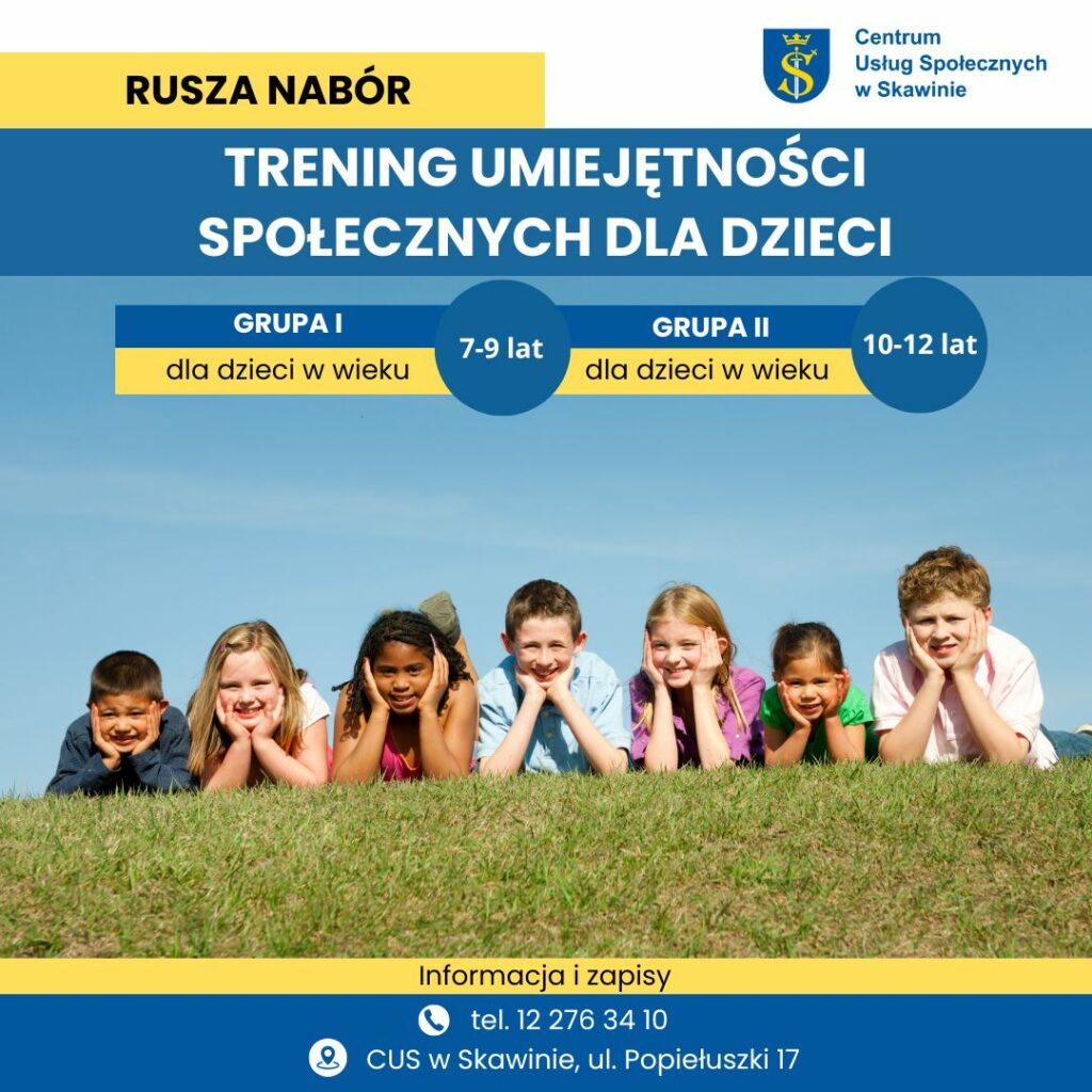 Centrum Usług Społecznych w Skawinie ogłasza nabór na zajęcia z Treningu Umiejętności Społecznych dla 2 grup wiekowych dzieci w wieku 7-9 lat oraz 10 – 12 lat z terenu miasta i gminy Skawina.