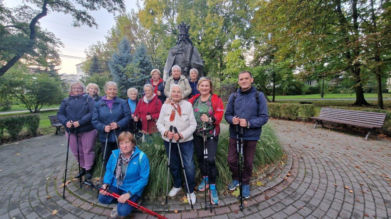 Program „ABC Nordic Walking…” był pełny różnorodności i uważności. Jedno ze spotkań miało np. element historyczny, kiedy  uczestnicy udali się pod pomnik Króla Kazimierza Wielkiego, założyciela Skawiny. Z kolei inne urozmaicone były spacerami Alejką Miast Partnerskich.
