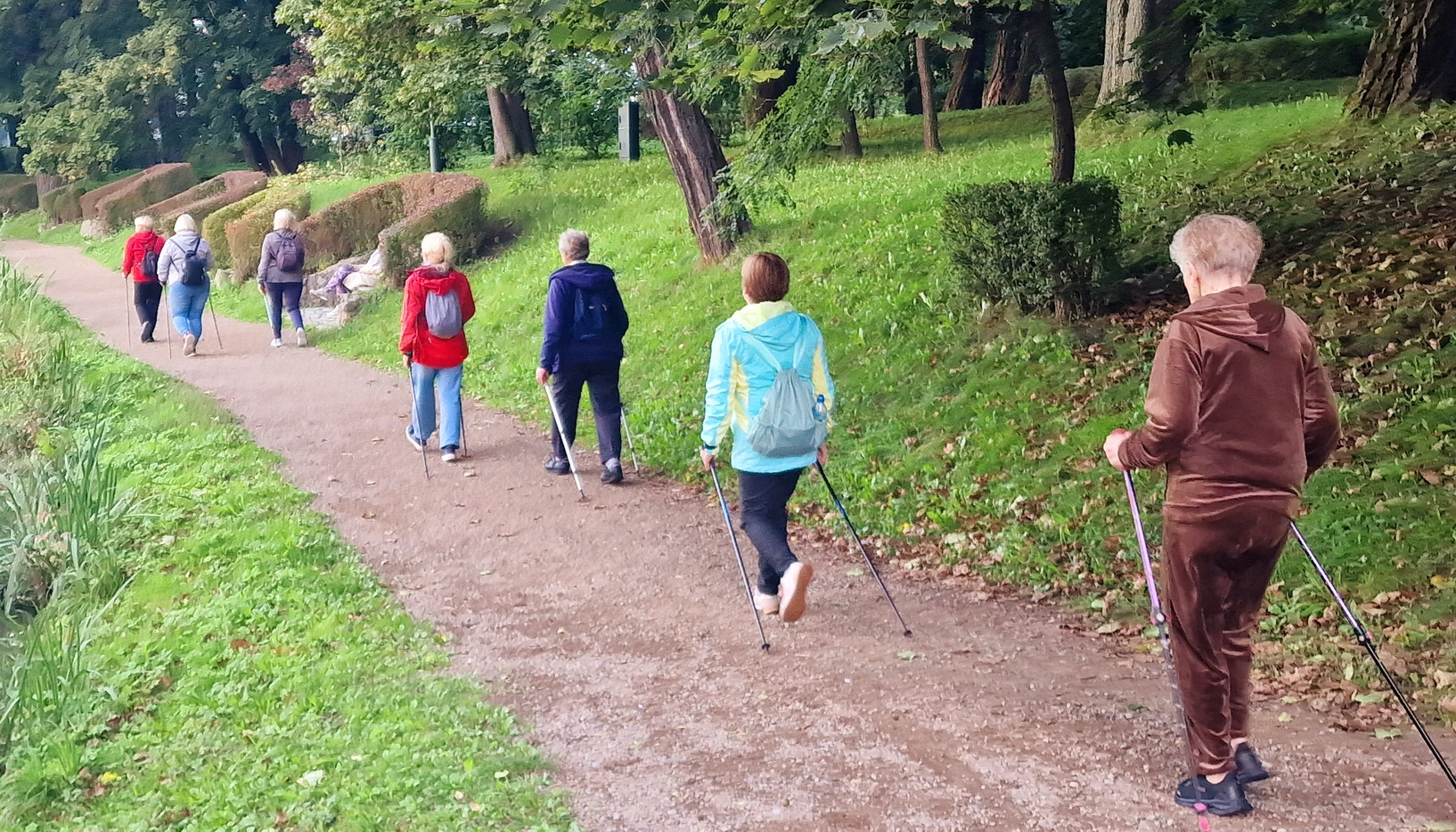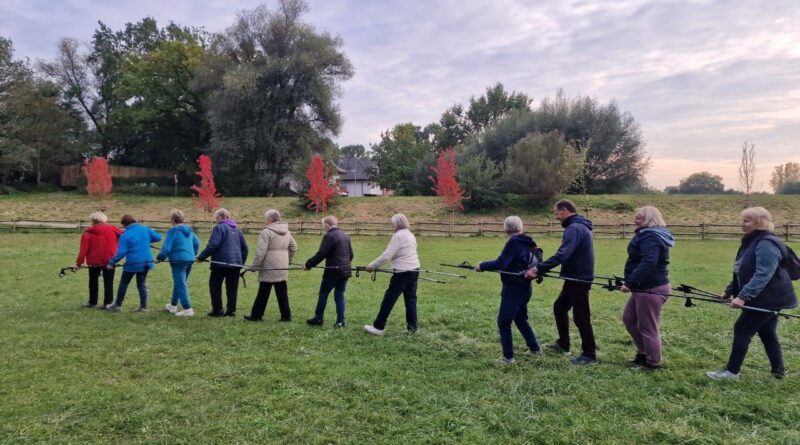Pod okiem instruktorki seniorzy doskonalili technikę „krok po kroku” – m.in. wymachy rąk, otwieranie i zamykanie dłoni, synchronizację ruchów, odpowiedni punkt wbicia kijka, wydłużony krok oraz aktywne zaangażowanie obręczy barkowej.
