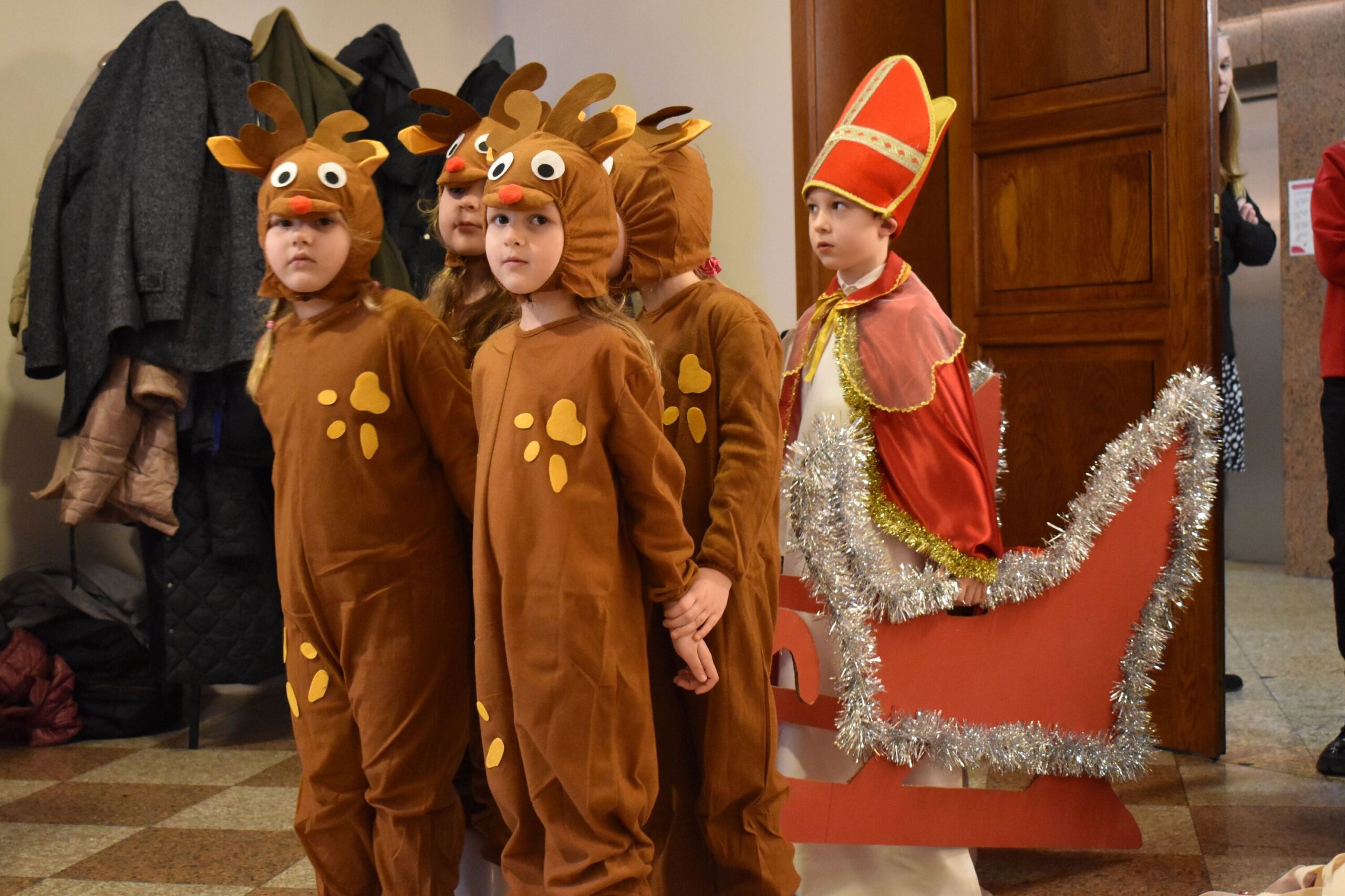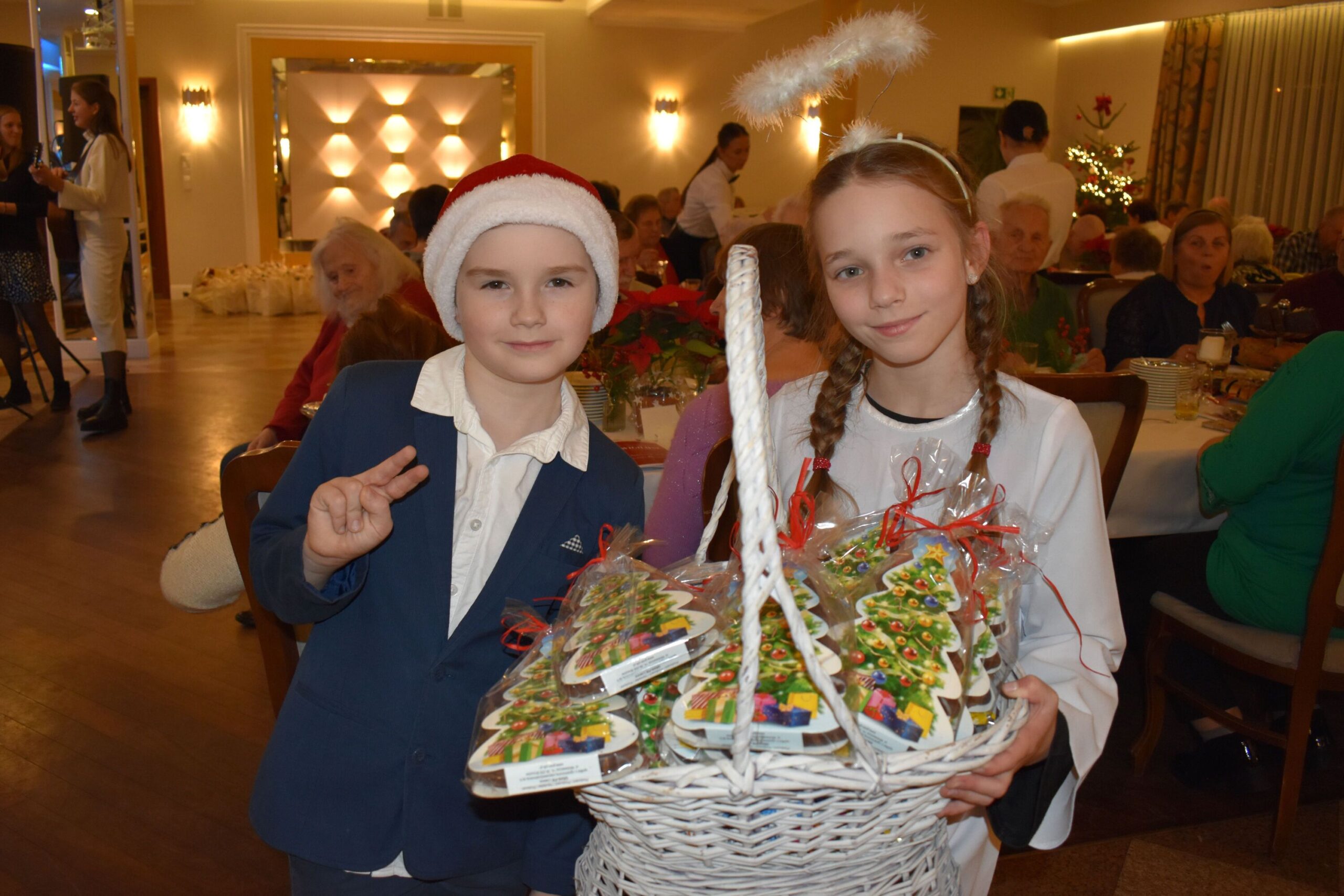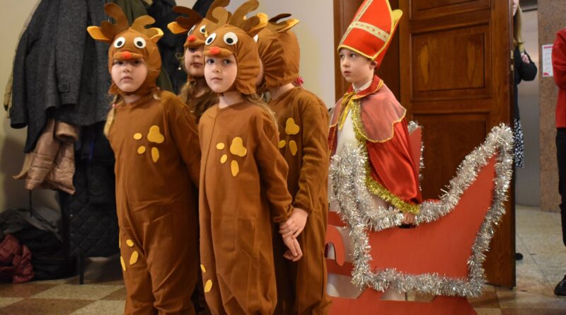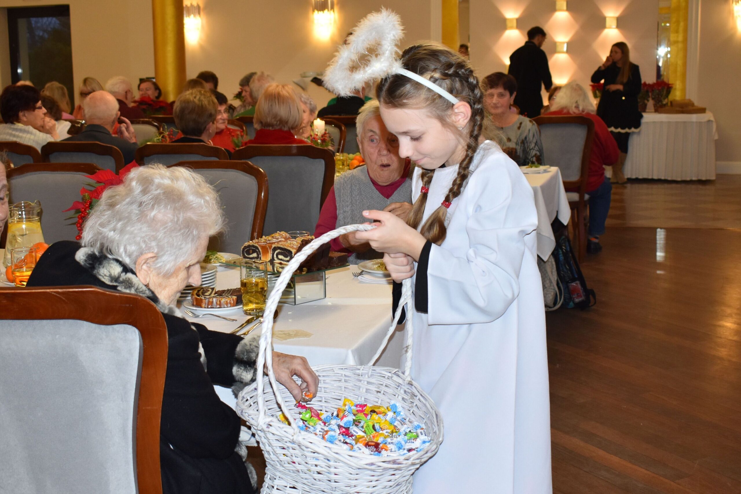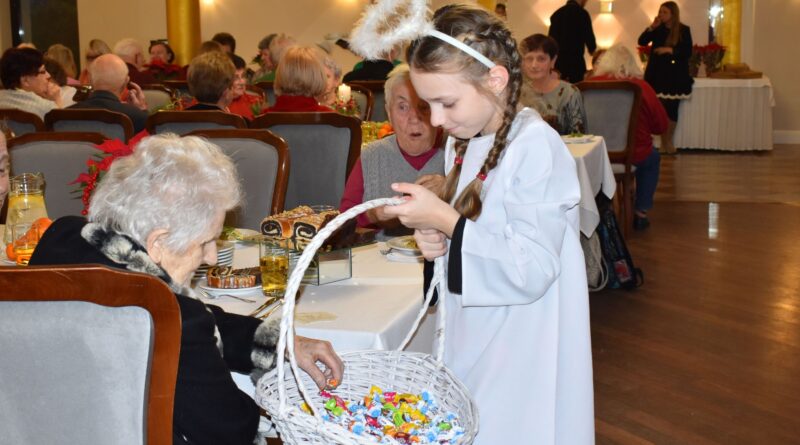 Dodatkową radość sprawili wyjątkowi goście – Święty Mikołaj, Aniołek i jego pomocnik, którzy obdarowali uczestników drobnymi upominkami, wywołując uśmiechy na twarzach wszystkich zebranych.