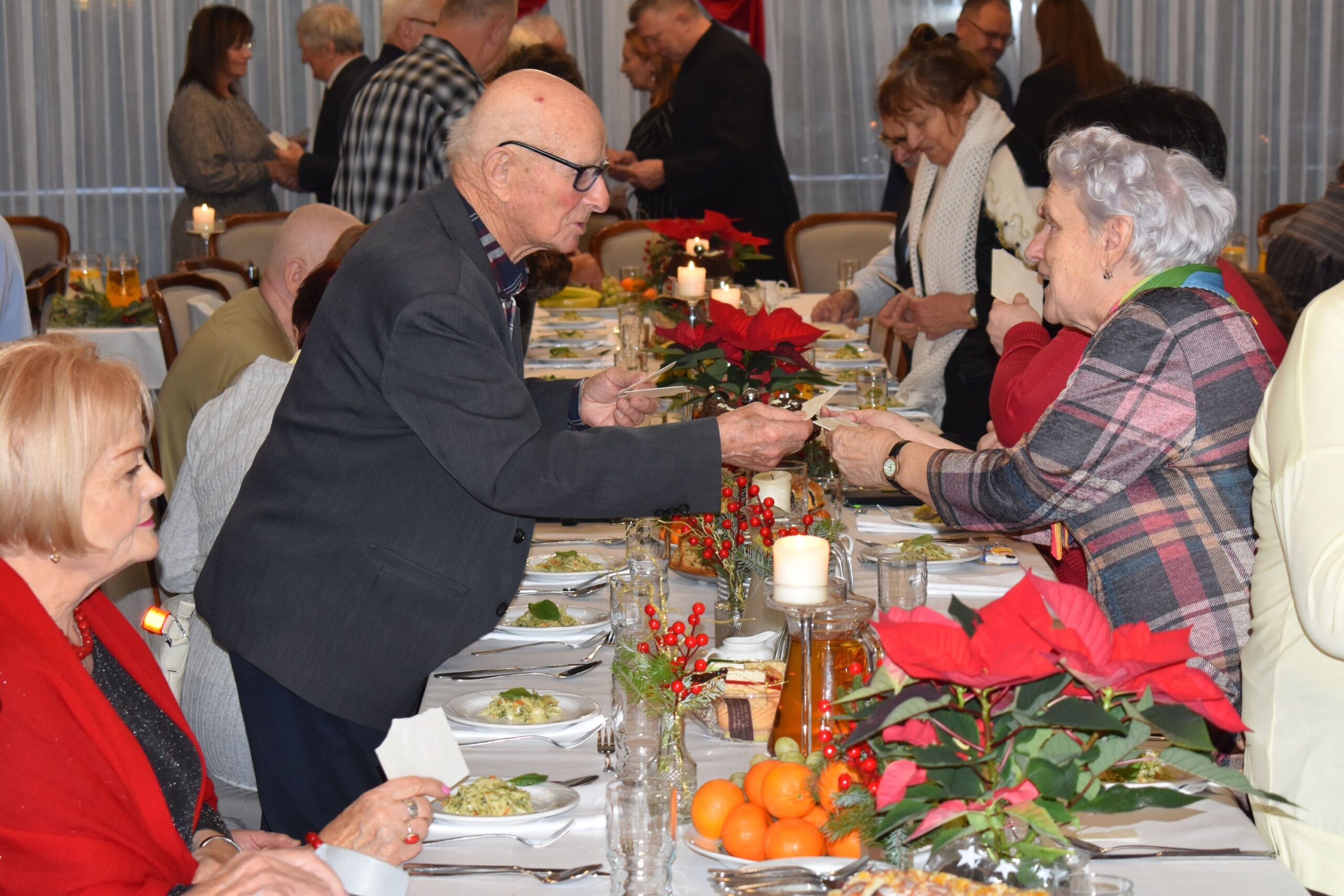 W spotkaniu uczestniczyli mieszkańcy naszej gminy oraz zaproszeni goście: Joanna Rudek – Dyrektor Centrum Usług Społecznych w Skawinie, Monika Kozak – Zastępca Dyrektora Centrum Usług Społecznych w Skawinie, Burmistrz Miasta i Gminy Skawina Norbert Rzepisko, a także Ewa Masłowska – Zastępca Burmistrza oraz Antoni Sapała – Wiceprzewodniczący Rady Miejskiej w Skawinie. Goście podzielili się serdecznymi życzeniami i ciepłymi słowami, przypominając wszystkim, jak ważne jest bycie razem w tym wyjątkowym, świątecznym czasie.